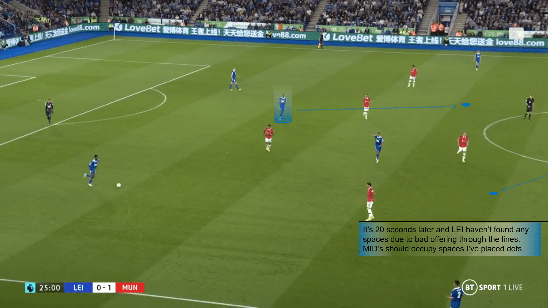 There’s more to movement than these two broad sub-sections, but the recent game against Manchester United highlighted a few clear conceptual problems for the Foxes. Therefore, these will be the focus of this work.