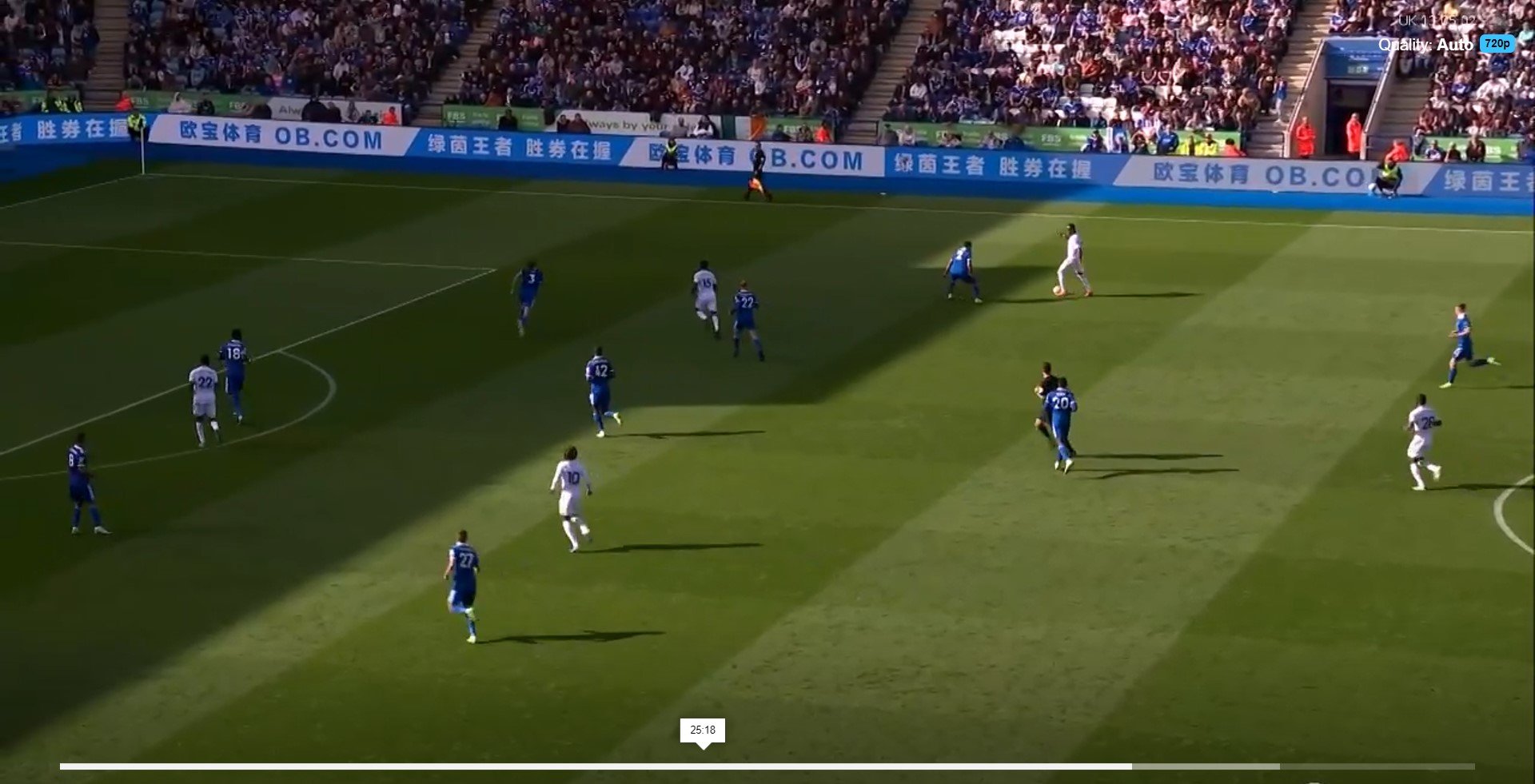 Not surprisingly, Leicester are forced to recycle possession backwards (to the annoyance of the crowd). Where we have Tielemans again, on the right of a back three.