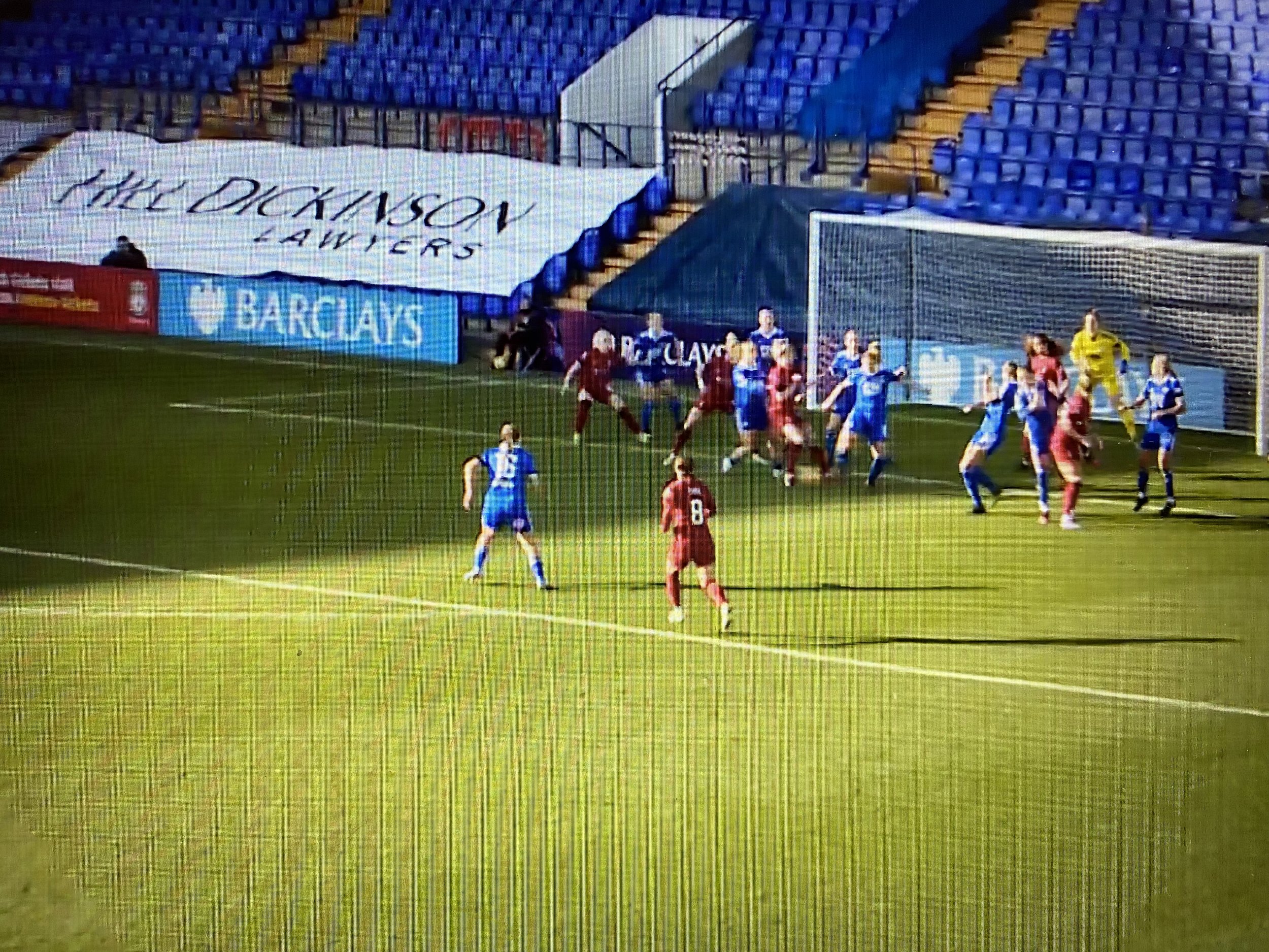 It was chaos in the six-yard box, first Leitzig pulling off a fantastic stop from close range before Liverpool substitute Natasha Dowie saw her header come back off the bar. The offside flag eventually went up and Kirk’s side survived.