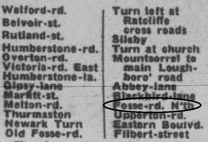 Many centuries later, on the west side of Leicester, a track running parallel to that old Roman route was named ‘Fosse Road’.