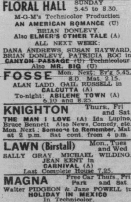 There we are – it began showing at the Fosse two days later, on Monday 19th.