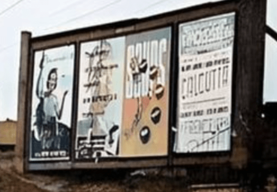 Now let’s go back to the original photo and look more closely at those advertising hoardings by the railway bridge: