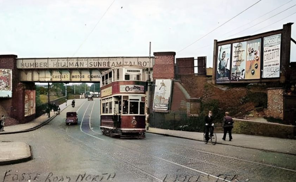 Bingo! The walkers would have passed right under the railway bridge, heading the same way as the tram, and past the point where the photo was taken.