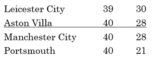 Villa were playing at Everton, and again they took the lead before throwing it away, losing 2-1. Now we had hope. The gap was just two points.