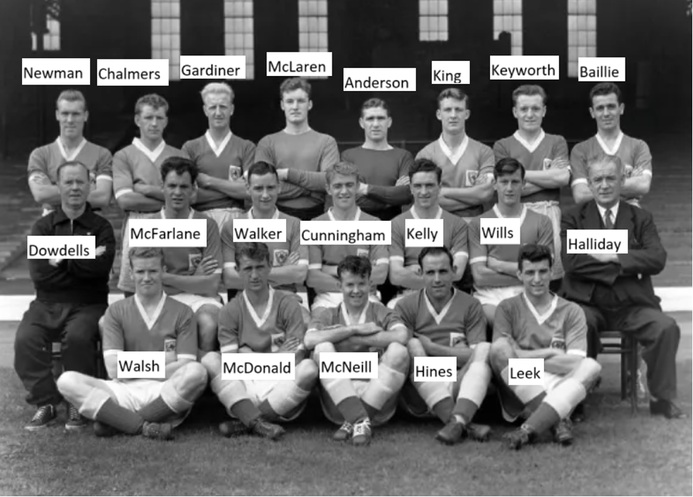 The squad at the start of the 1958/59 season, before Halliday quit and Gillies took over.