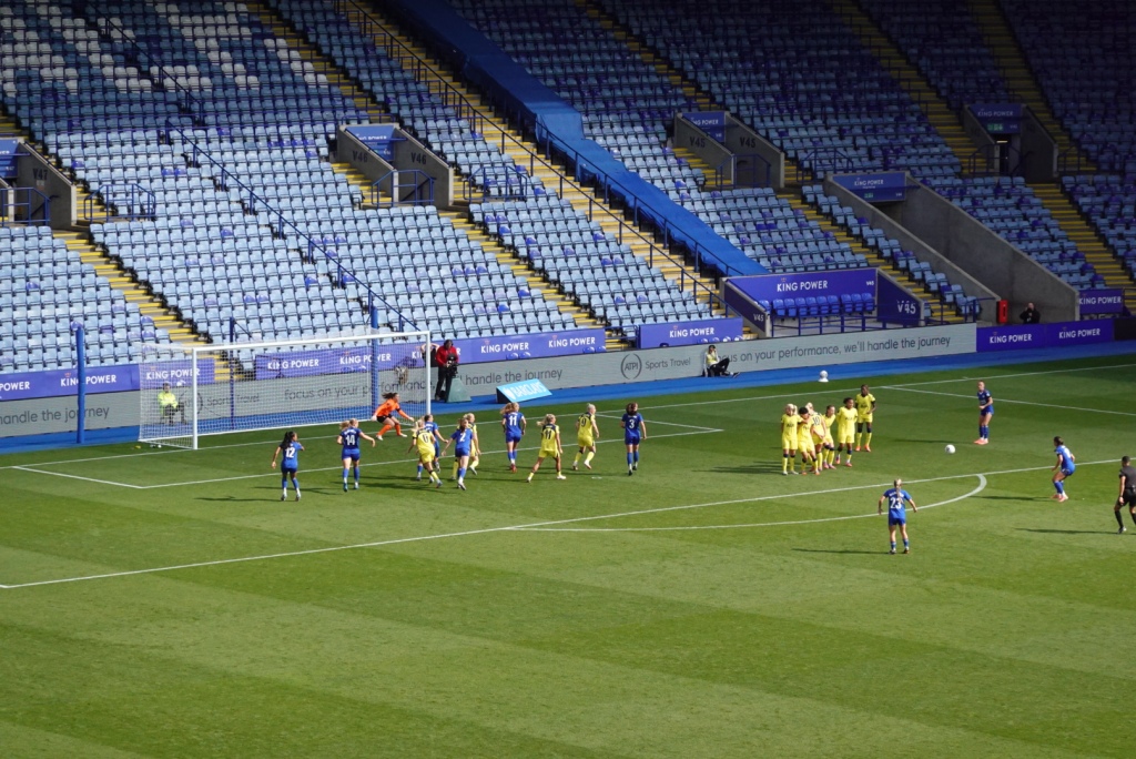 From that point on, we carried on in our Passmore-ball style, now familiar after 4 games of the season. Sitting deep, packing the middle and chasing long balls out from the back, it’s not pretty, but it’s potentially effective. Our set pieces need to improve, and a foul on McLoughlin just outside Spurs’ box gave us a great chance for some live practice. Julie Thibaud and Hannah Cain stood over the ball, slightly to the right of centre, and there was some palpable tension. I’m all for centre-backs stepping up and leathering the ball for a free kick – it’s maybe my favourite type of goal – but despite the effort, it hit the wall. This feels like a metaphor for Leicester in general.